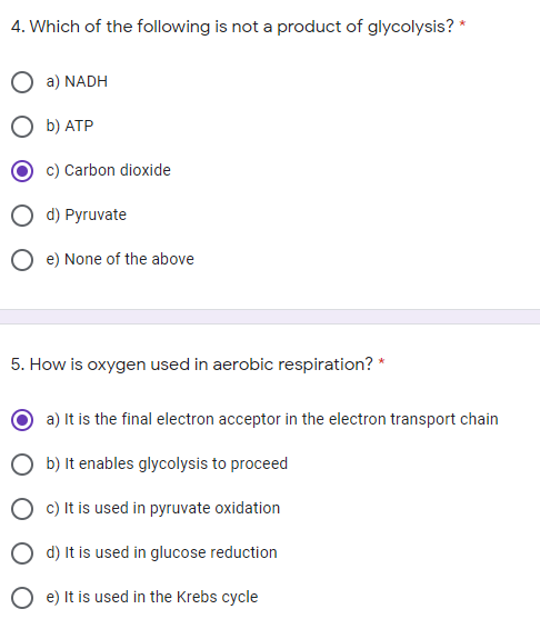 АТР D CO E A B and C 5. The first step in getting energy in the cell by. Which of the following molecules is not a product of glycolysis.